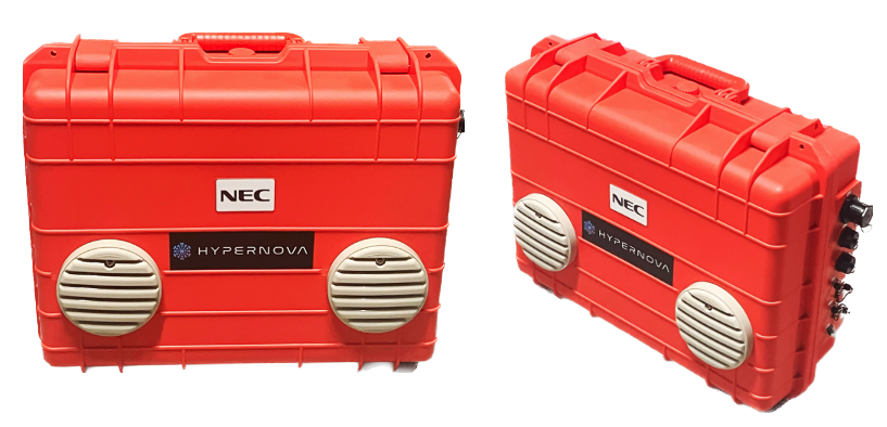 1. 可搬型ローカル5G「HYPERNOVA」の活用: 従来の通信インフラ整備が困難だった河川敷においても、NECネッツエスアイと東京大学が共同開発した可搬型ローカル5Gシステム「HYPERNOVA」を採用することで、問題を解決しました。このシステムは小型・省電力化が実現されており、電源を入れるだけで通信環境が利用可能となり、ローカル5Gの「高速大容量」「超低遅延」という特性を活かした高精細な映像伝送を可能にします。